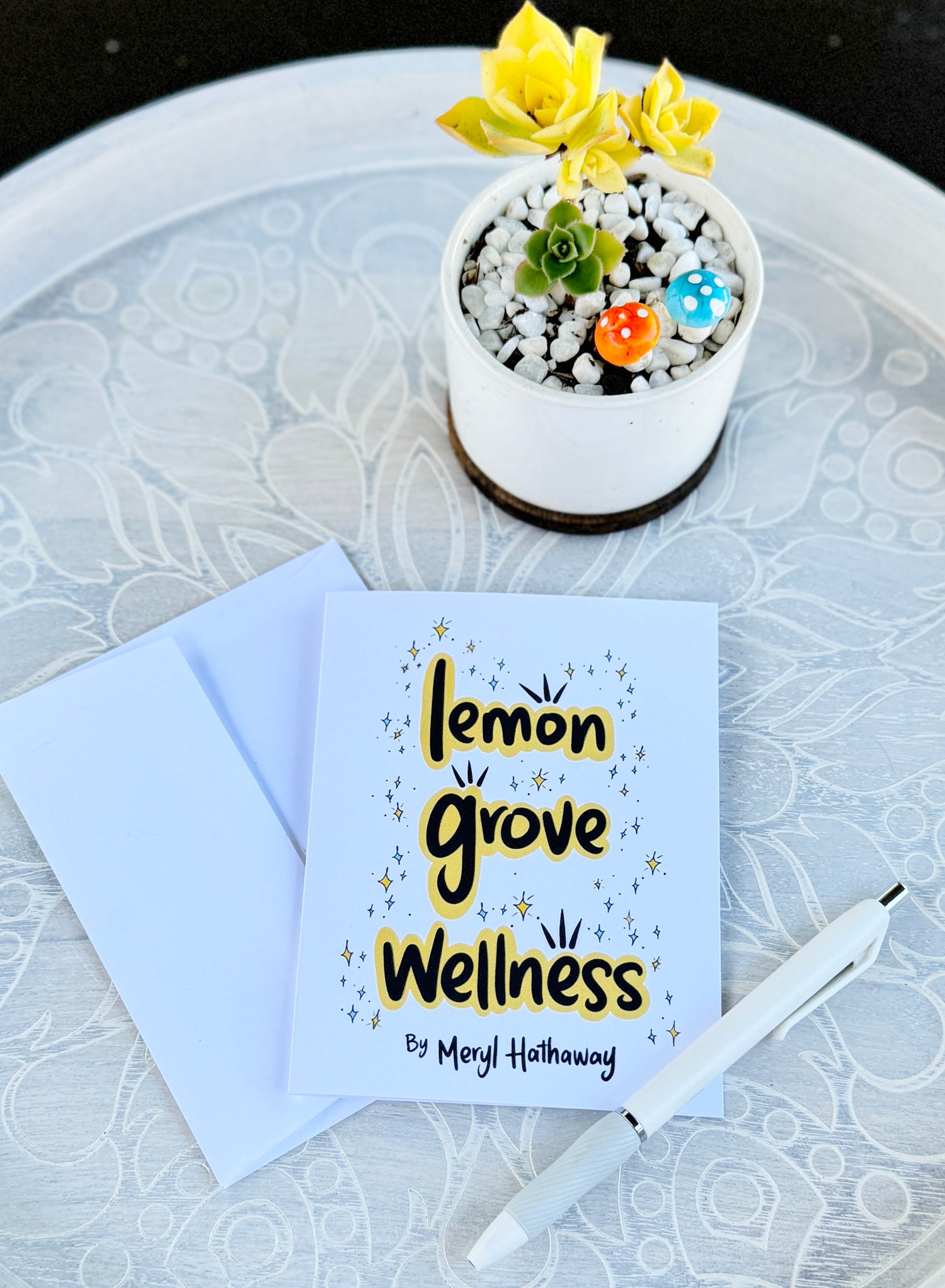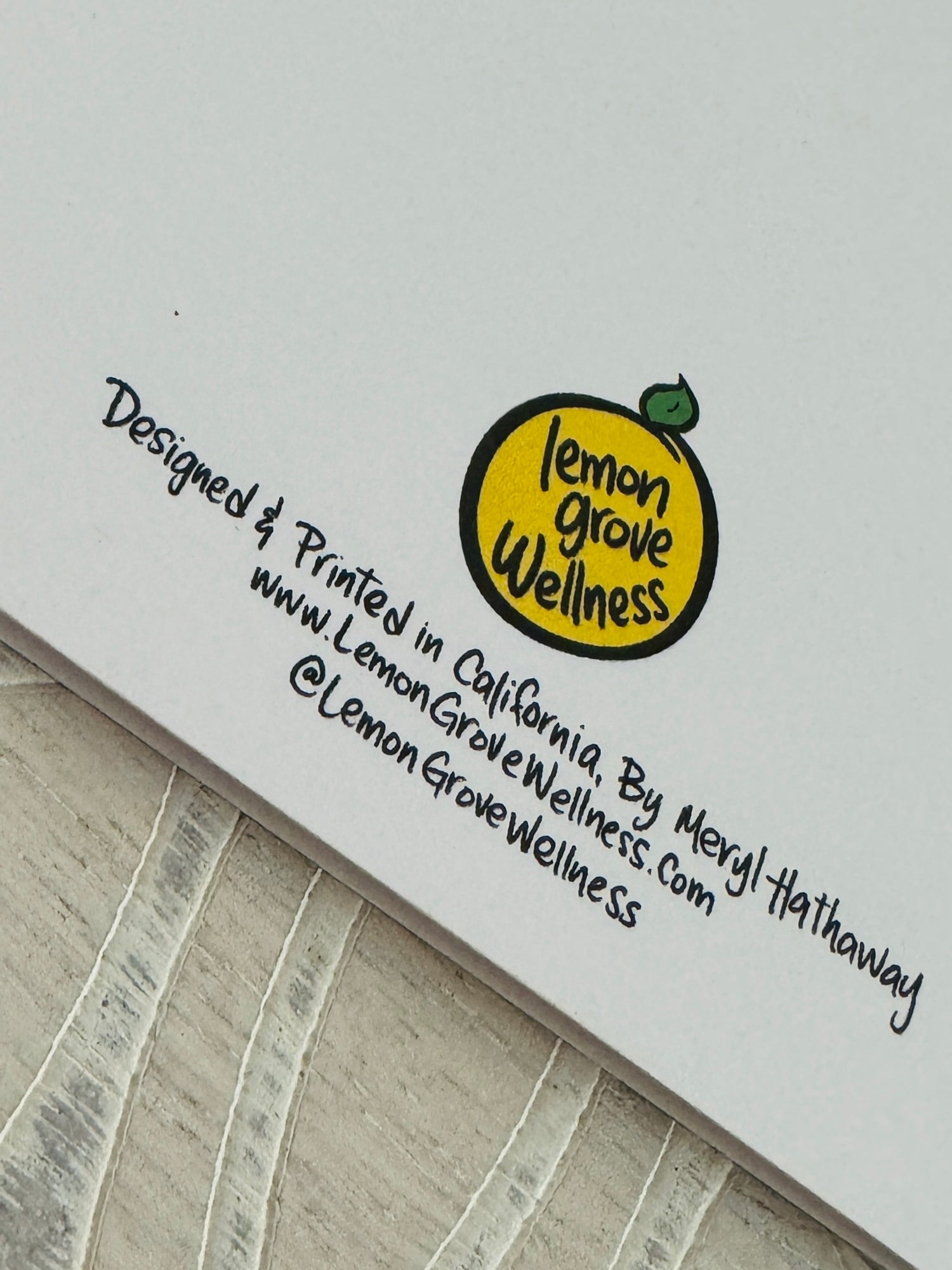 From the creative mind of Meryl Hathaway, Lemon Grove Wellness cards are uniquely made with colorful and cheeky designs to support authentic relationships and real life situations. Blank inside to allow you to personalize the messaging, they are the SPARKLING, vibrant and thoughtful antidote to the traditional, non specific cards we see time and time again. So if you're looking to send the people in your life high quality, extraordinary sentiments by way of an exceptional card... and I recommend you do...